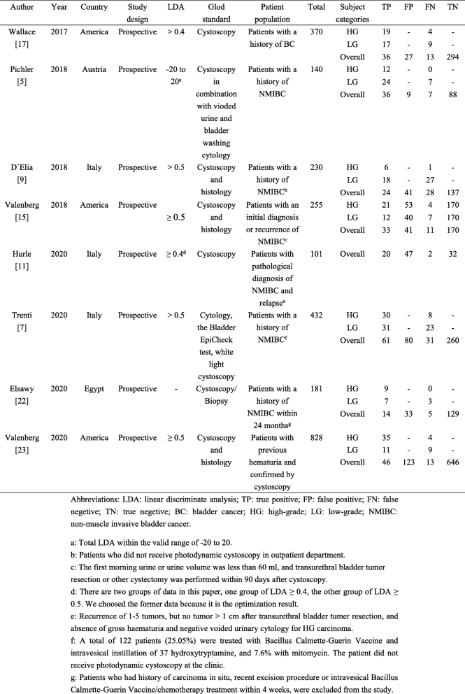 From: Pooled analysis of Xpert Bladder Cancer based on the 5 mRNAs for rapid diagnosis of bladder carcinoma
